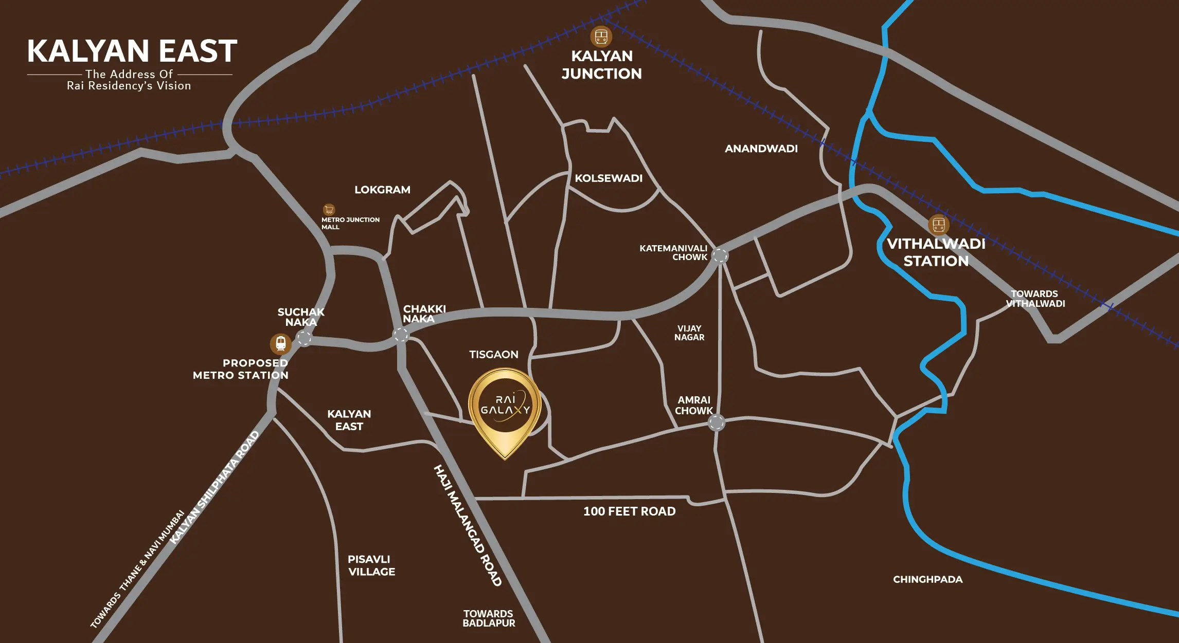 Rai Galaxy, A Landmark 25 - Storey Tower That Brings You The Perfect Fusion Of Modern Living And Unmatched Convenience. Located Just 0.5 Km From Kalyan Station And 1 Km From Vitthalwadi Station, Your Daily Commute Becomes Effortlessly Easy. With The Proposed Kongaon Metro Station Only 1 Km Away, You're Already Future-Ready.